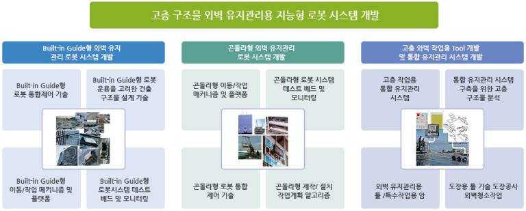 The Building Maintenance Robot Research Center(BMRC) is established to develop built-in guides and gondola type intelligent robot systems and other multipurpose tools for special tasks such as cleaning the walls of various buildings, painting, and more.