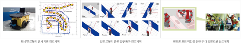 The research goal of the lab is to develop an algorithm that enables robots operate autonomously in a complex environment. The major topics of research is focused on motion planning for mobile robots with holonomic and nonholonomic constraints and also for highly-articulated robots, operating in a highly-dimensional configuration space. We also study the modelling of the environment using range sensors.